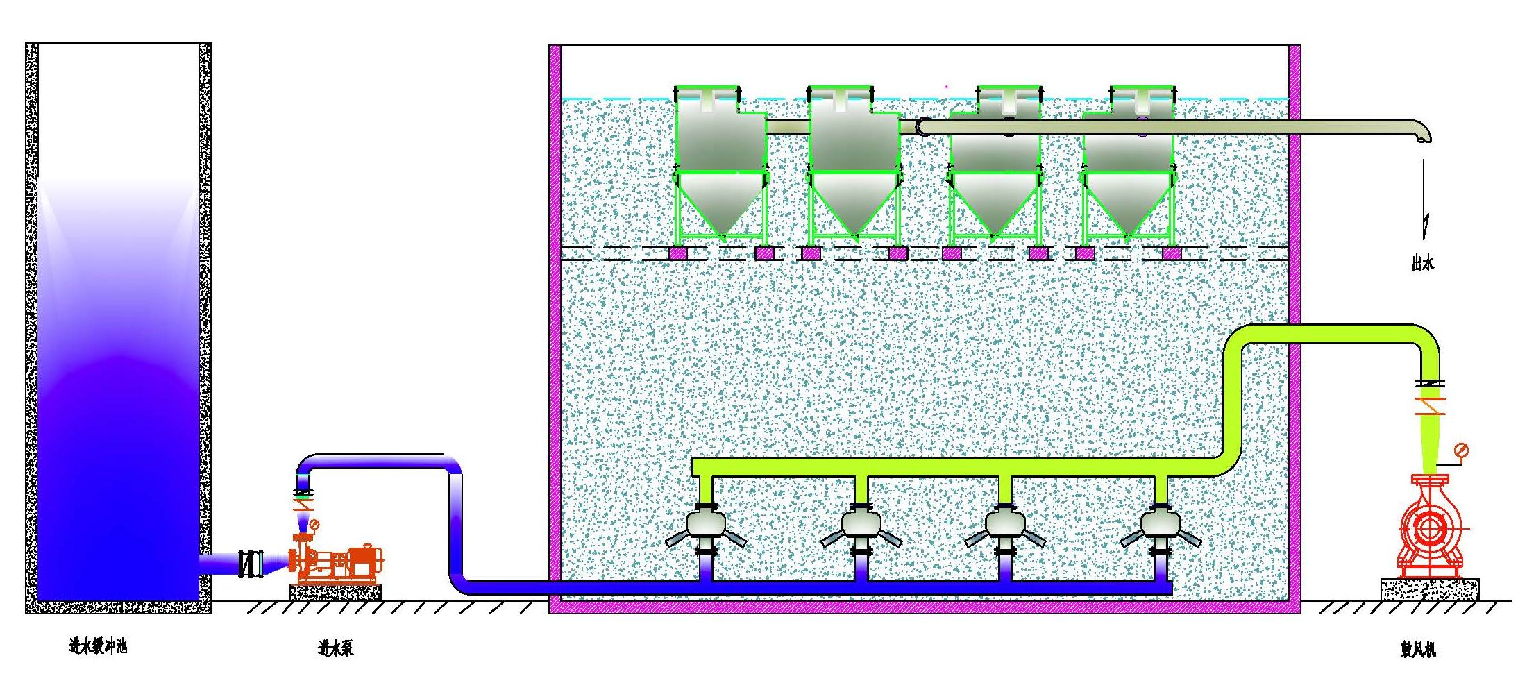 百克公司經(jīng)與合作伙伴經(jīng)過2年的研發(fā),將SHARON 和ANAMMOX有機(jī)整合到一個(gè)反應(yīng)器中,即BIC-ANAMMOX反應(yīng)器,該反應(yīng)器下部由進(jìn)水布水器和射流混合曝氣器組成,中部為反應(yīng)區(qū),上部位固液分離模塊,該反應(yīng)器獲國家發(fā)明專利:ZL 2014 1 0416646.8